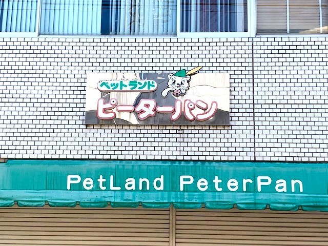 タイムズ小田急本厚木ミロード第9駐車場入口の前はペットランドピーターパンの看板があります。