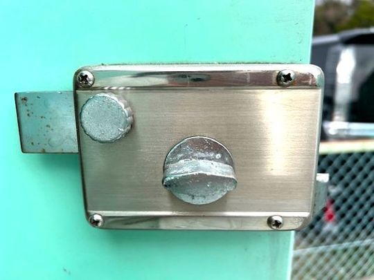 ドア扉の裏面にある金具です。閉じ込められた場合、このつまみで開ける事ができますmmmmm