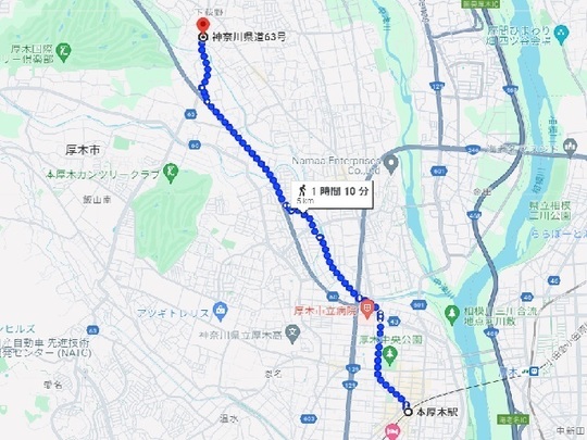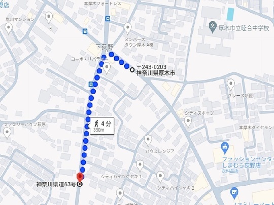 ​①荻野新宿バス停~徒歩の場合