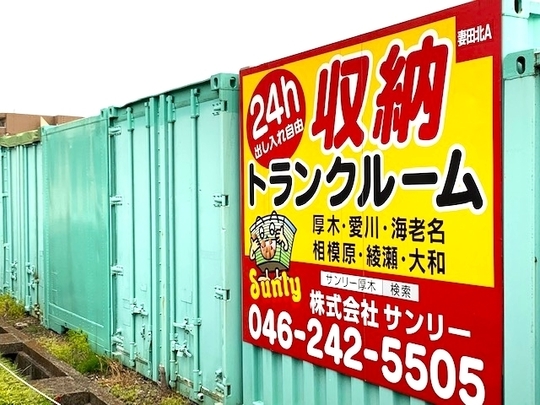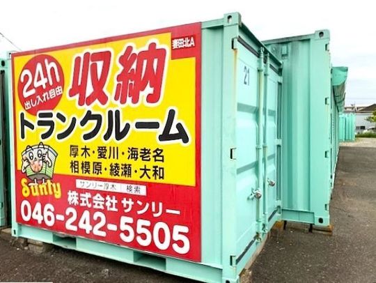 神奈川県厚木市でトランクルーム・レンタル倉庫をお探しなら、株式会社サンリーが運営する「厚木妻田北A」へどうぞ。小田急線本厚木駅が最寄駅。車横付け・平置き・24時間利用可能、屋外型