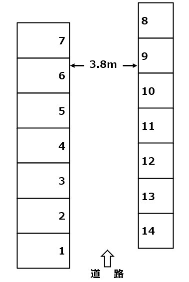 右配列の奥NO,8~入口NO,14まで方向