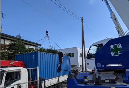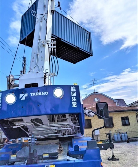 20㌳コンテナが荷下ろしされている様子