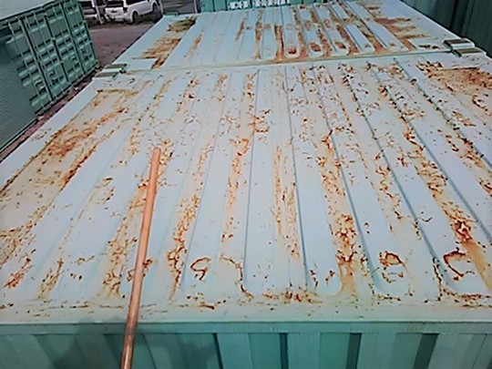 コンテナ上部汚れ落とし後のサビ部分