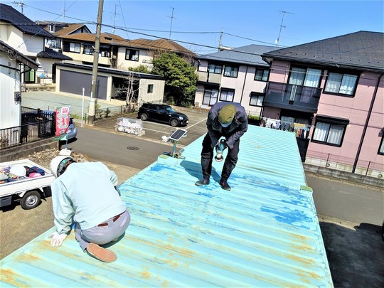 • 錆はがし下地処理塗装を丁寧に塗り終え