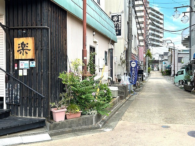 「楽」という文字のある店を左折します